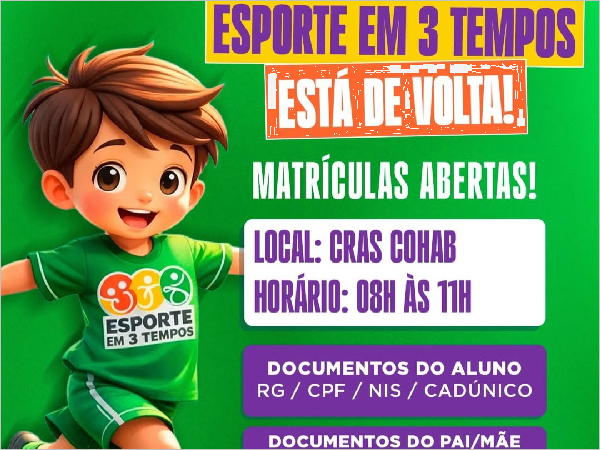 Atenção pais e responsáveis! As matrículas para alunos novatos nas escolas do Município de Independência em 2026 já estão prestes a começar! A partir do dia 05 de janeiro, você poderá garantir a vaga do seu filho e dar o primeiro passo para um ano letivo repleto de aprendizado e cuidado com a educação. Não perca tempo, organize a documentação necessária e assegure um lugar para o seu pequeno estudante. A Secretaria de Educação está preparada para receber todos os novos alunos com todo o carinho e dedicação que eles merecem. Não deixe para a última hora, matricule-se já e garanta um futuro brilhante para o seu filho! #Matrículas2026 #Educação #AlunosNovatos #Futuro